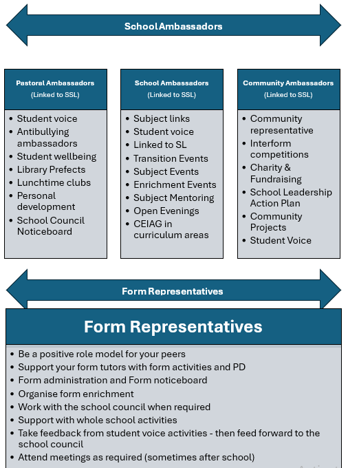 Student Leadership Students Student Leadership Select section Select section Behaviour & Expectations Examinations and Revision Y11 Mock timetable Jan/Feb 2026 Extra Curricular Activities 2025 2026 Careers & University Mental health and emotional wellbeing Microsoft Teams Instructions Student Leadership Uniform & Equipment Y9 Options 2026
